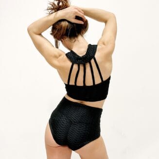 Top sportivo verde con spalle all’americana, sostegno senza imbottitura e tessuto elastico che garantisce libertà di movimento e comfort. Semplice, elegante e pensato per farti sentire a tuo agio in ogni fase del tuo percorso di pole dance.