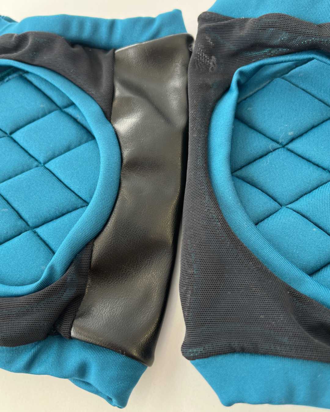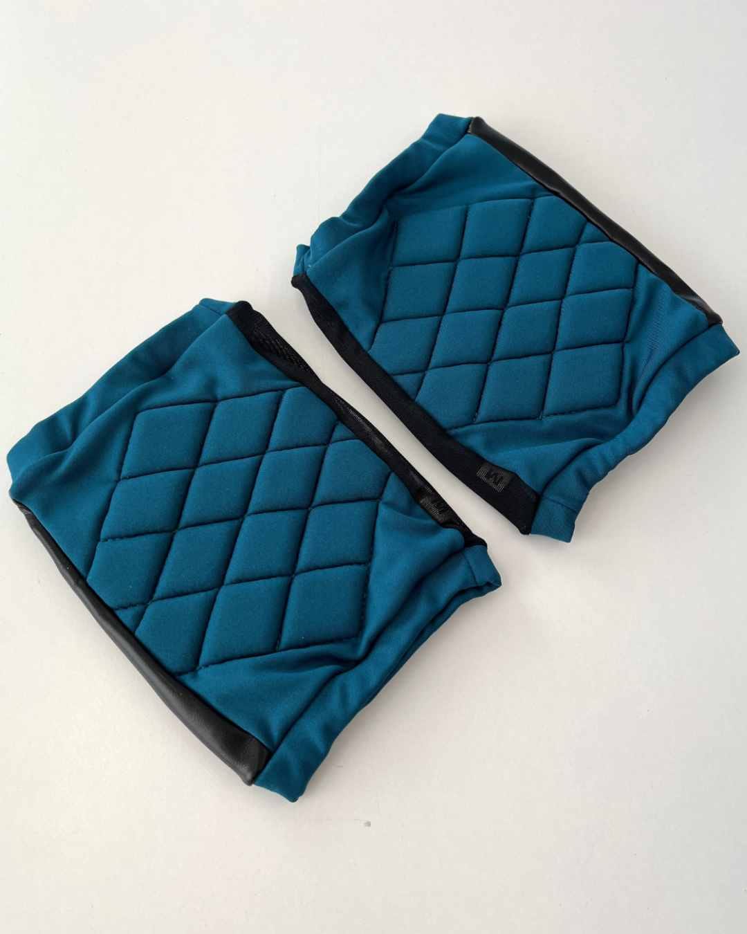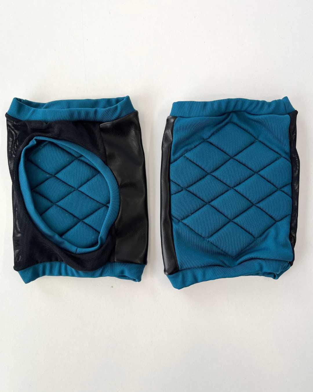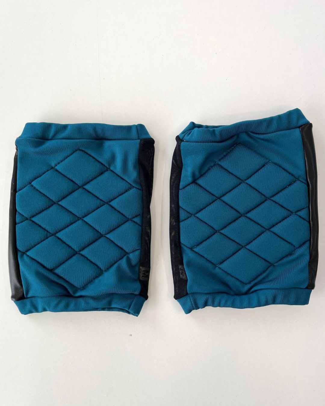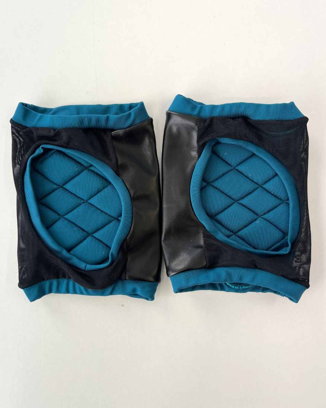 Ginocchiere da pole dance color ottanio con imbottitura anteriore matelassé, mesh trasparente sul retro e inserti grippanti. Perfette per exotic e floorwork, ideali anche per i trick al palo grazie al foro posteriore per il grip.